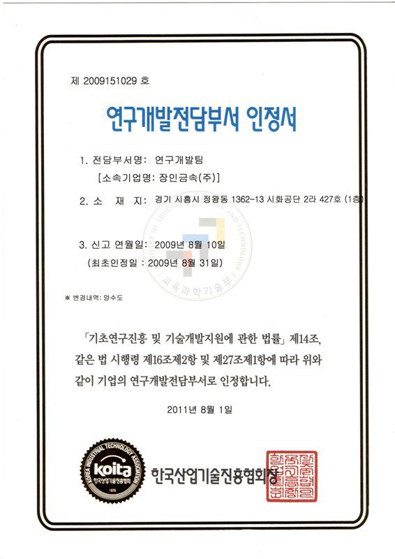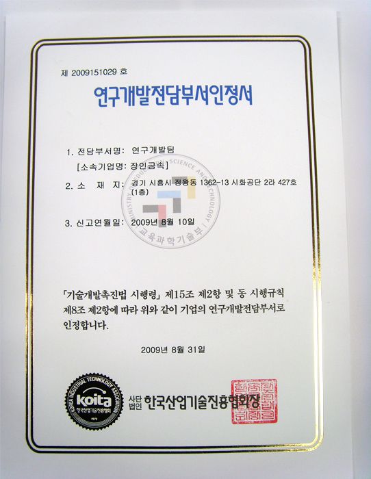 인증서 및 자격증 연구개발전담부서인증서 작성자 관리자 작성일 2010-04-15 03:25 조회 2091 좋아요 0 싫어요 0 인쇄 « 벤처기업확인서 한국가스공사 외주품질관린등록증 » 목록보기 답글쓰기 Powered by KBoard